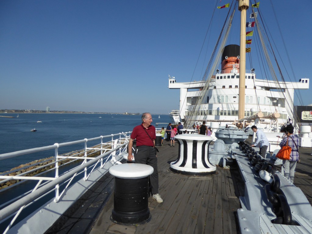 Then an overnight train journey from Williams to Los Angeles followed with arrival in LA about 6.30am. We had a tour of the city including the Hollywood scene – all somewhat tacky we thought – and then an overnight on the Queen Mary. It is looking tired externally and the cabins are, of course, old-fashioned compared to modern hotel rooms but an enjoyable experience. From the deck you could watch pelicans diving into the water for fish in quite lovely sunny conditions.