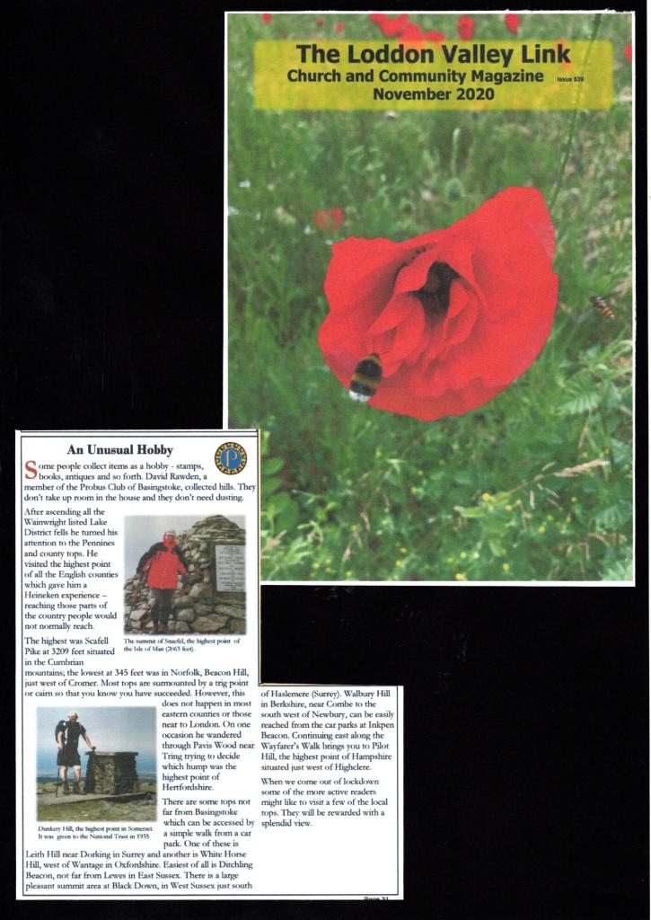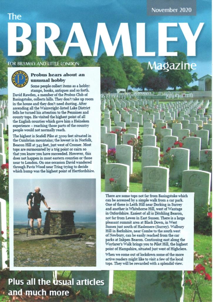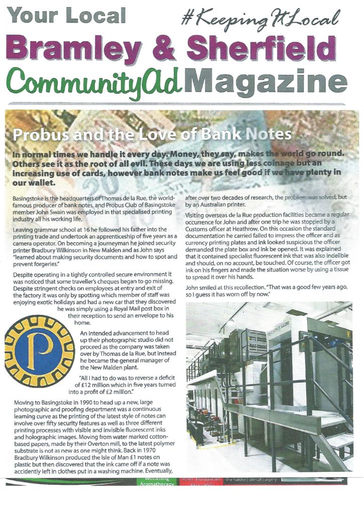 A good month for local magazines giving coverage to Probus reports. Eight carried the story by David Rawden about his hill climbing activities and two new magazines, published by CommunityAd for the areas of Sherfield & Bramley (A4 full colour) and Overton & Oakley (A5 full colour).  Both carried the story of the Love of Bank notes which I sent to them back in August but as these are quarterly publications, they are always going to behind anything that appears in the monthly magazines.
