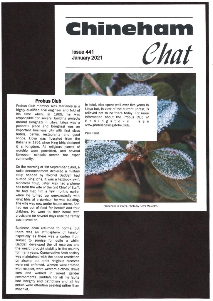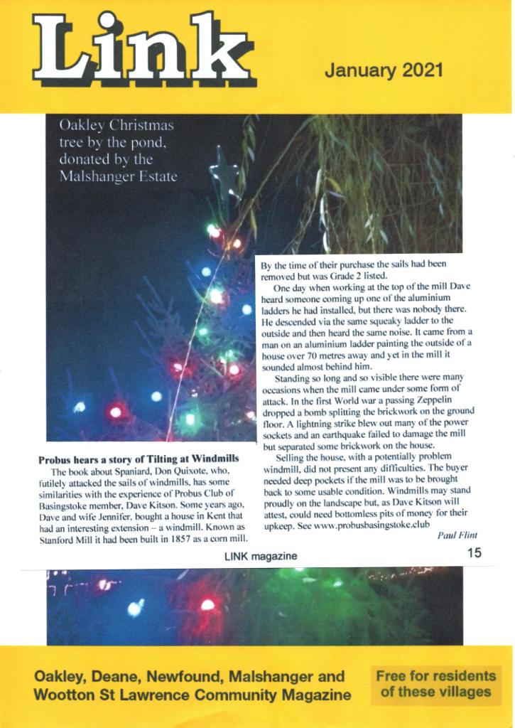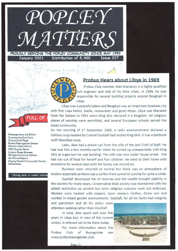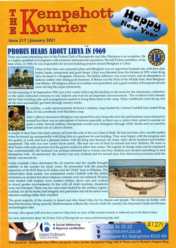 There is some confusion at the Basinga where the small piece about Probus refers readers to their Basinga Extra to read the full report by Alex Marianos about his time in Libya but it cannot be seen, instead the December report about Dave Kitson’s windmill has been repeated.