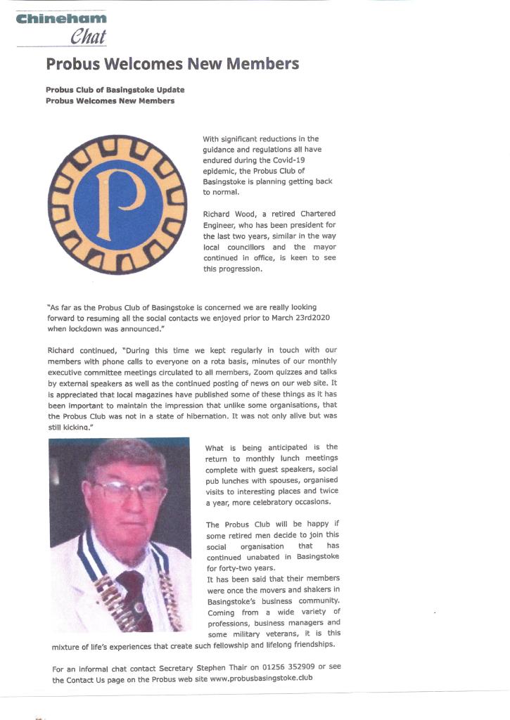 The Loddon Valley Link, as previously mentioned, is tricky to gain a place in each printed edition and made more difficult because of their rotating editor policy. Our most supportive editor has now resigned and a new one has been installed but it may take time for a relationship to be built up so that the Probus Club reports become a standard feature.
