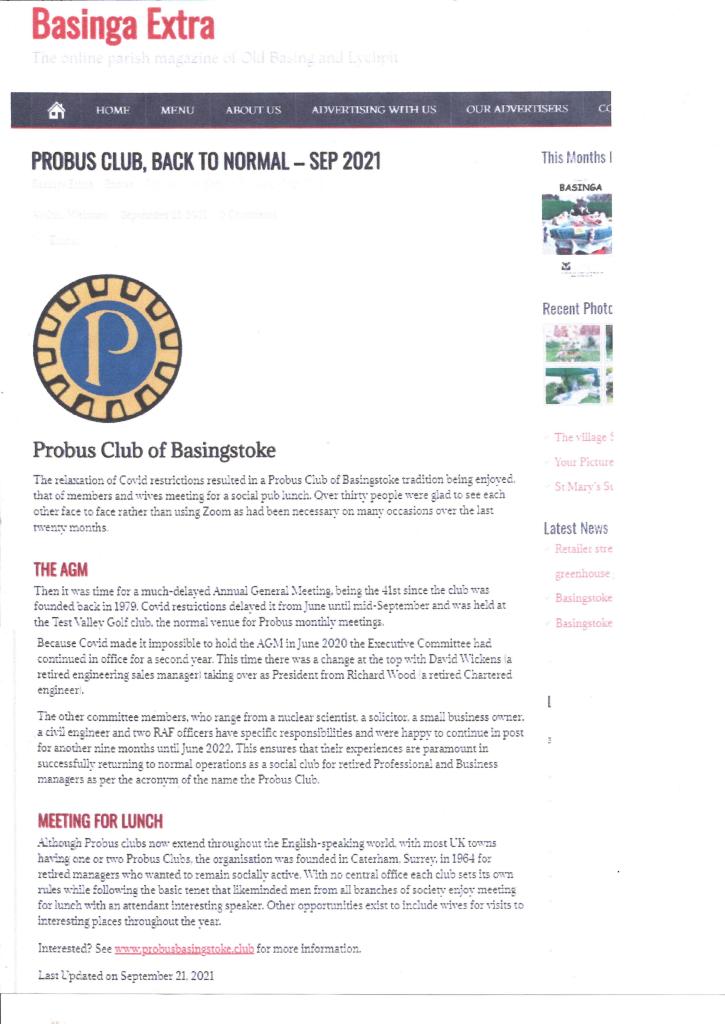 The Probus Club of Basingstoke was honoured to receive a visit from the Worshipful the Mayor of Basingstoke & Deane BC, Cllr Onnalee Cubitt, joining the members for lunch at their regular meeting at the Test Valley Golf Club.