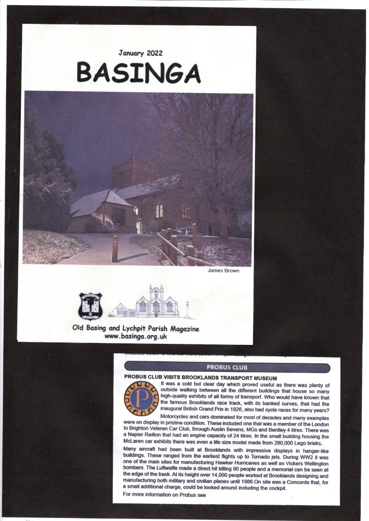 Publicity in the local magazines for January has always been sparse – mainly because most of the magazines have a combined December/January edition. The only magazines these days that have a specific January edition, since the closure of Popley Matters and the Chineham Chat, are the Kempshott Kourier, the Link (Oakley and surrounds) and the Basinga (Old Basing).