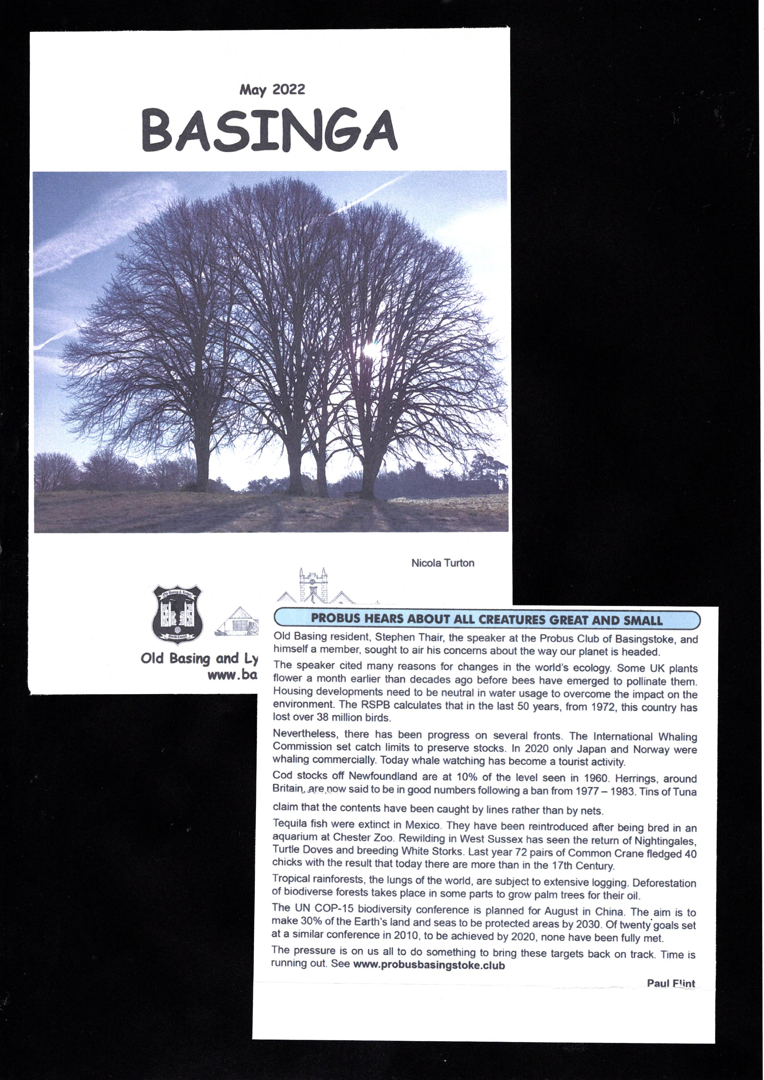 The report on the talk by our Hon Secretary, Stephen Thair, about Creatures Great and Small was received well by the local magazines.