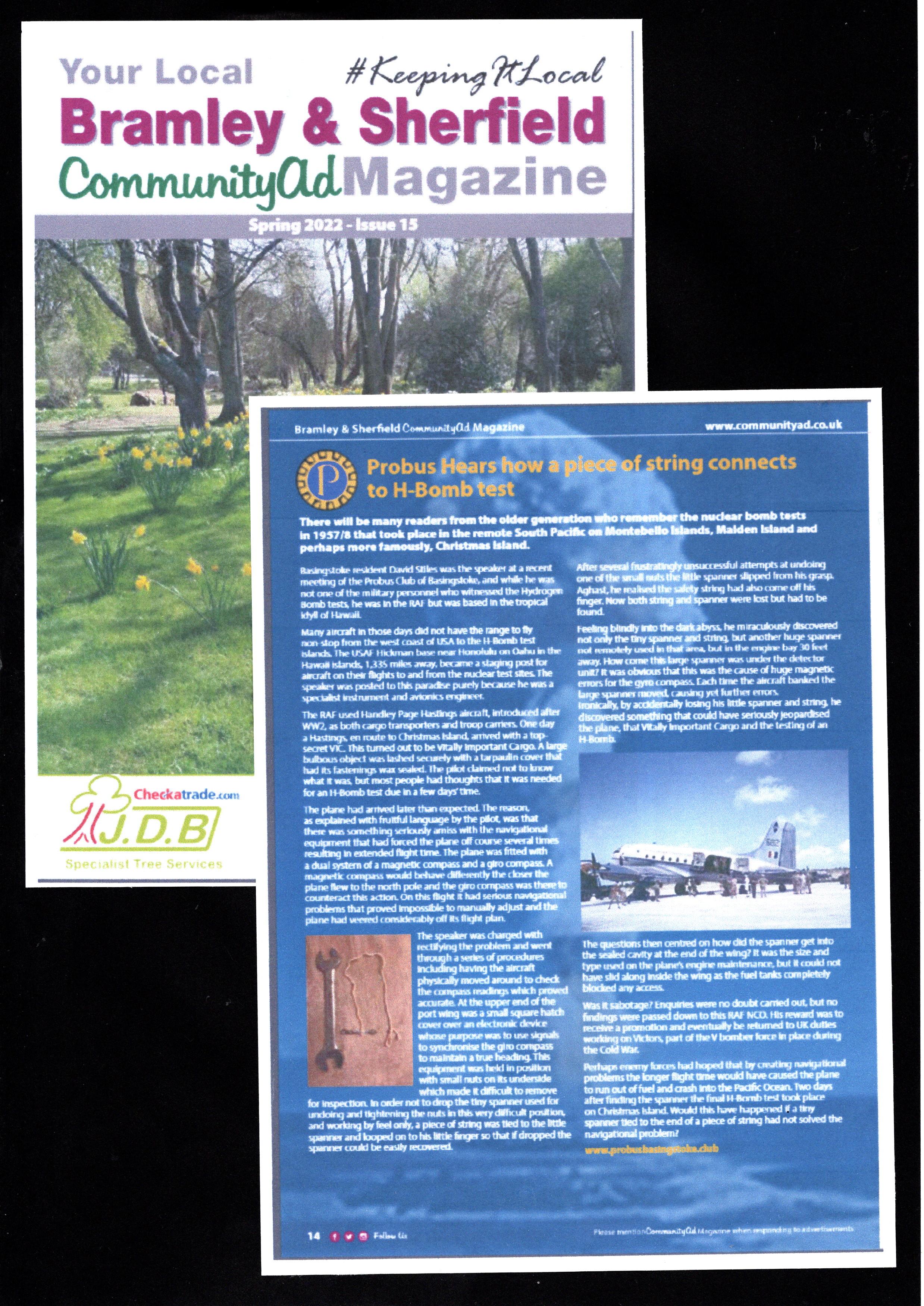 The full report was featured by the Rabbiter and Kempshott Kourier while the short version was published in the Bramley, Basinga and on the web site of the Link. The CommunityAd magazine for Bramley & Sherfield features the older report about the atom bomb and a piece of string.