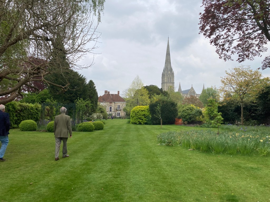Garden of Arundells with its view of the spire of Salisbury Cathedral