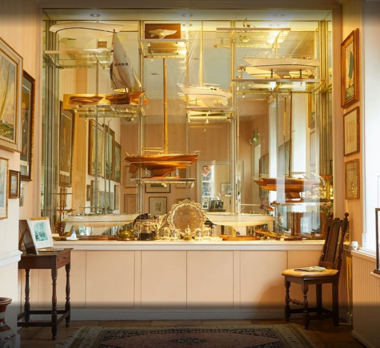 As well as paintings of his boats the house is decorated throughout with original paintings, some by famous artists including two by Sir Winston Churchill, L S Lowry and Augustus John. There are beautiful collections of ceramics, glassware and sculptures and treasures from the Far East – including hand painted Chinese wallpaper, and a stunning collection of Japanese woodblock prints.