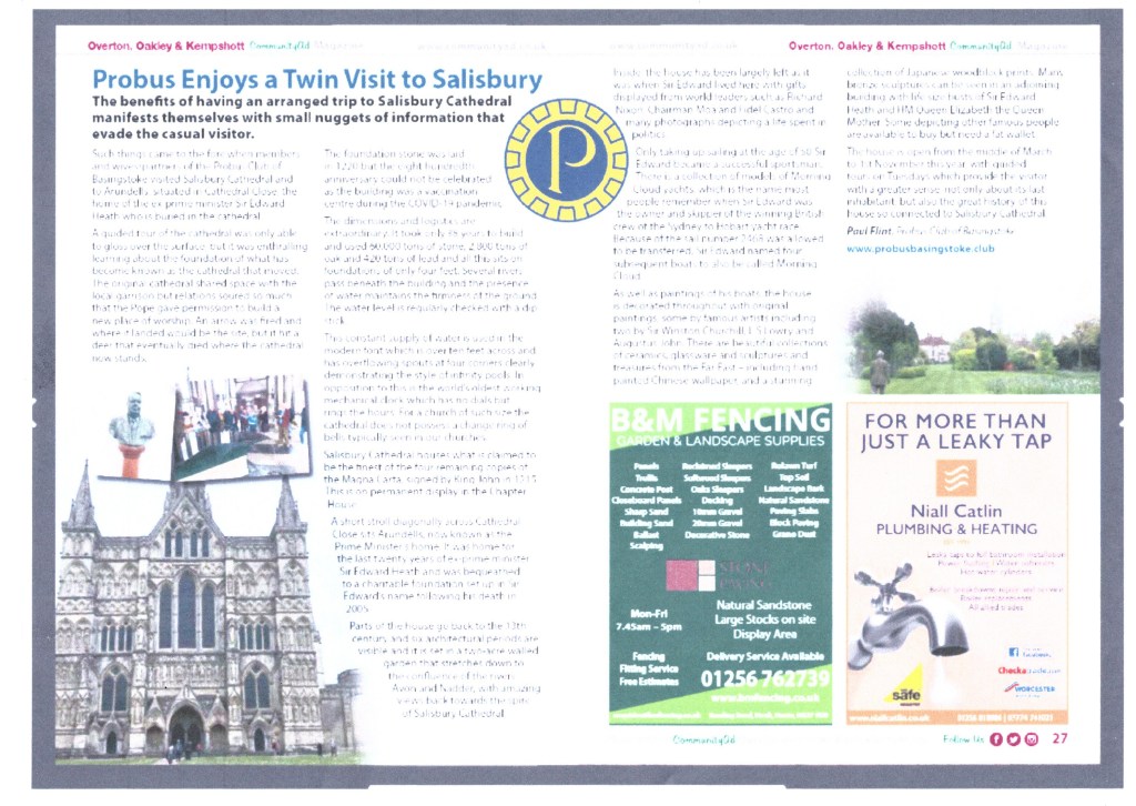 Outgoing president David Wickens reviewed his year of office which has included presiding over talks by guest speakers, and visits by the Mayor of Basingstoke & Deane BC, Cllr Onnalee Cubit and the president of the Ladies’ Probus Club, Revd Jane Leese. Throughout the past year, once things returned to normal last September, there have been social activities that included wives/partners either at special lunches or visits to interesting destinations.