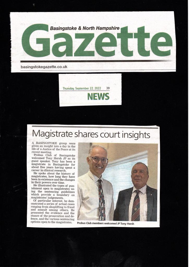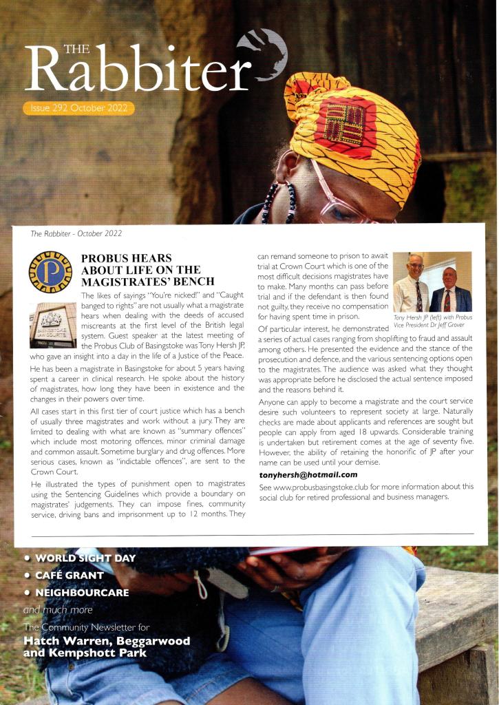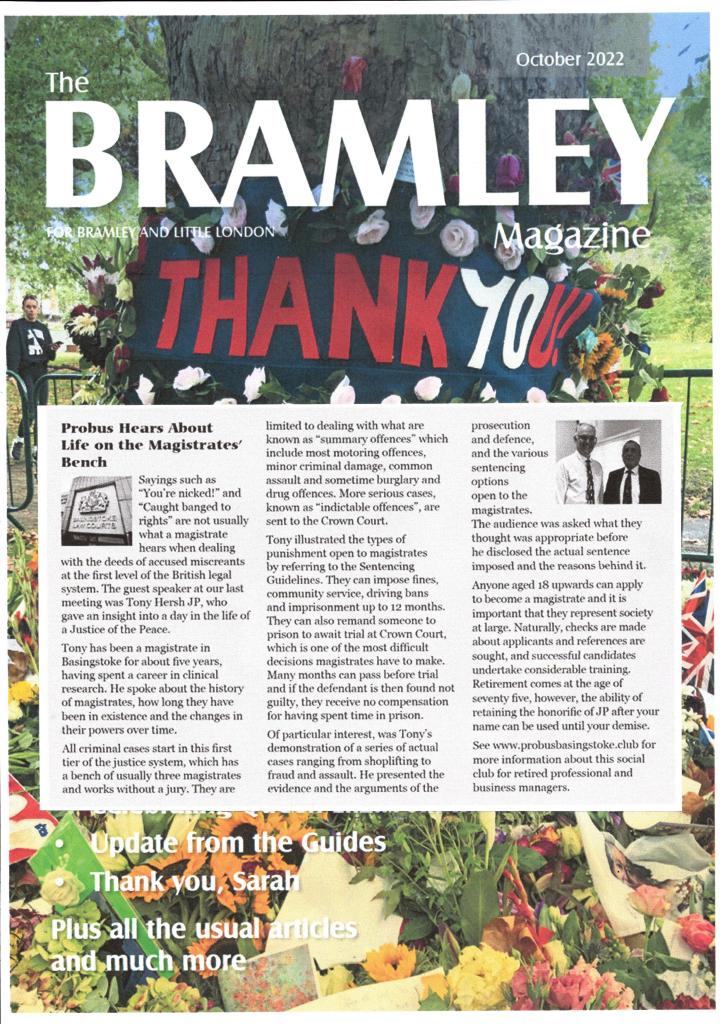 A good result for our publicity in the October publications with six magazines and the Basingstoke Gazette giving coverage to the report on Life on the Magistrates’ Bench. Perhaps the upright standing of the various editors encouraged their interest about the goings on in the local magistrates’ court.