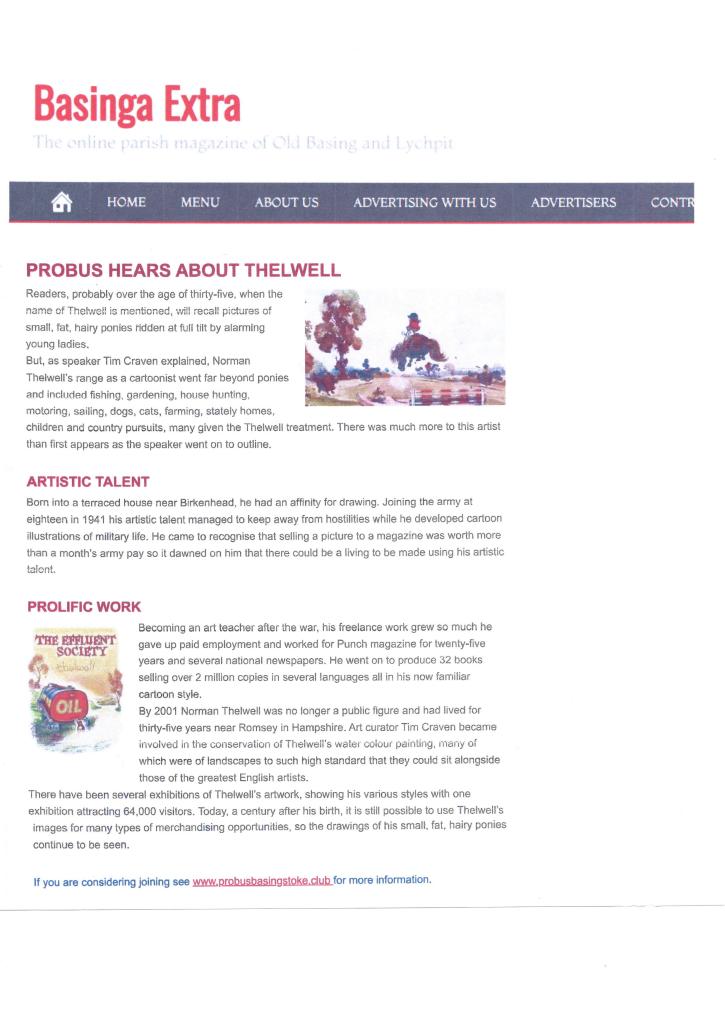 The Probus Club of Basingstoke had a personal history lesson by Kempshott residents David Stiles and partner Jenny Barton, who reminisced about his wartime experiences as a schoolboy in Southampton.