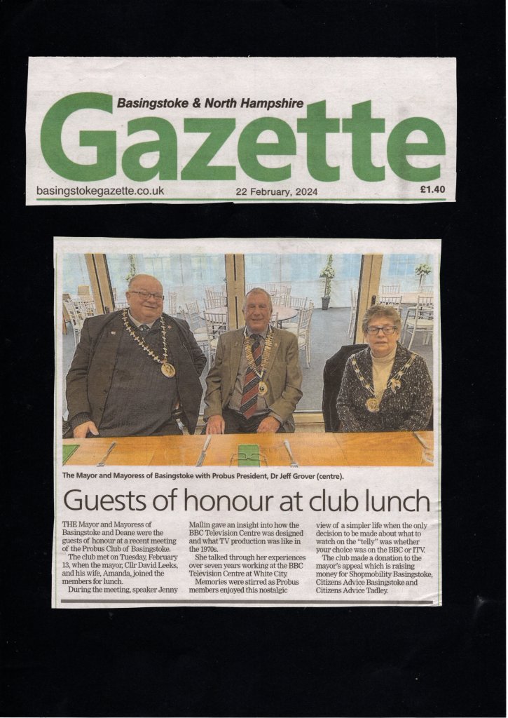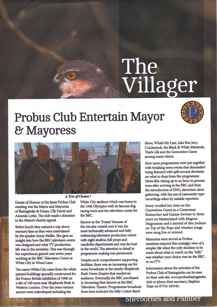 A good result with all seven local magazines carrying our report. The Kempshott Kourier, late again, is their February edition showing the cricket report while the others are about the visit of the Mayor and Mayoress and the talk about the BBC which even achieved coverage in the Basingstoke Gazette.