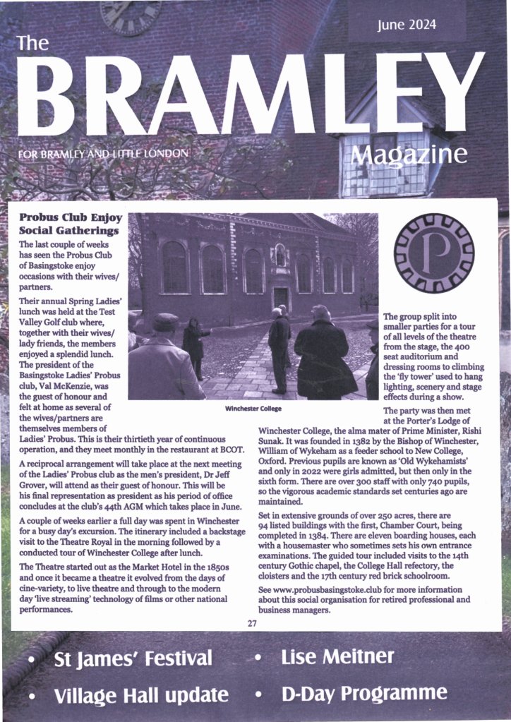 Grouping together the visit to Winchester Theatre Royal and Winchester College ensured that we had good coverage in most of the local magazines. The Link (Oakley & surrounds) did not feature us and at the time of publishing this report I have not seen the June edition of the Loddon Valley Link (Sherfield) but they are reluctant to carry our reports.