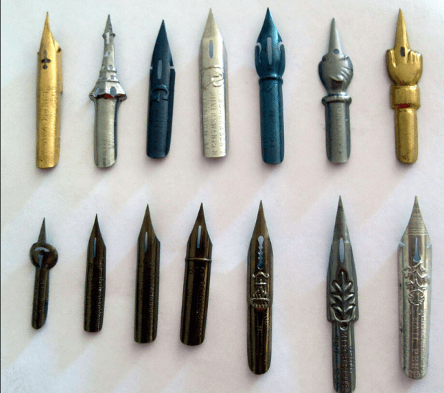 By the mid-1850s, the metal nib had been refined for dip pens. A narrow slit in the nib allowed ink to flow by capillary action, and Birmingham became a major centre of production, with one company alone employing two thousand workers. Dip pens remained a classroom staple into the 1950s, when school desks still featured ceramic ink wells refilled daily by the designated “ink monitor” a prized position. Today, steel nibs survive mainly in the hands of artists and calligraphers.